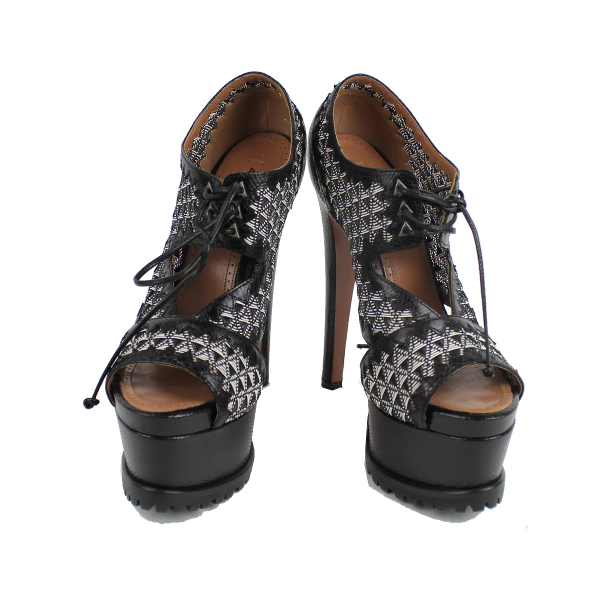 BY: ALAIA: SHOE-BOOT: LEATHER BLK HIGH PLATFORM CHUNKY GRIP SOLE WHITE