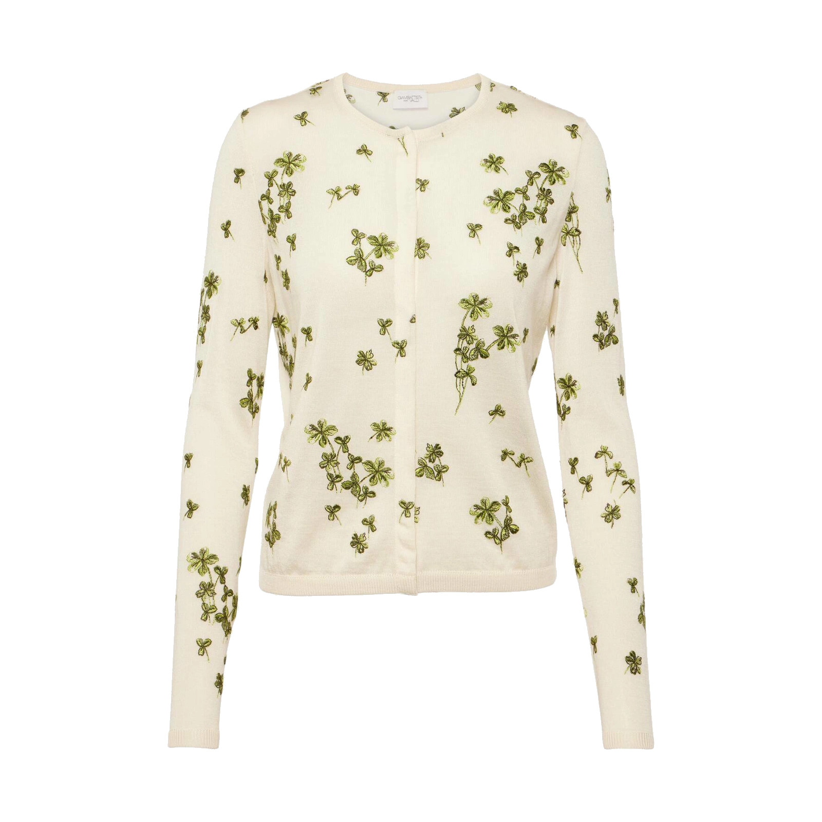 W GREEN FLOWER EMBROID LS ROUND NECK STUD FAST FRONT ASIS DELICATE ES