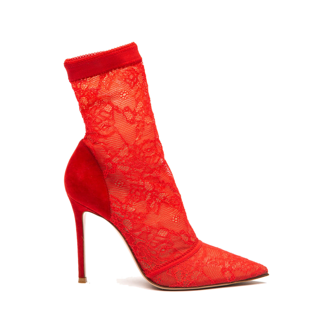 BY: GIANVITO ROSSI: ANKLE BOOTS: LACE RED POINTED TOE CAP SUEDE BACK HEEL