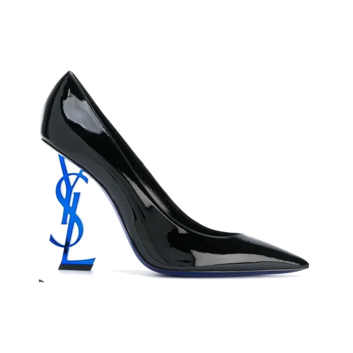 BY:SAINT LAURENT: SHOES : PATENTN BLK POINTED TOE CAP W ELECTRIC BLUE